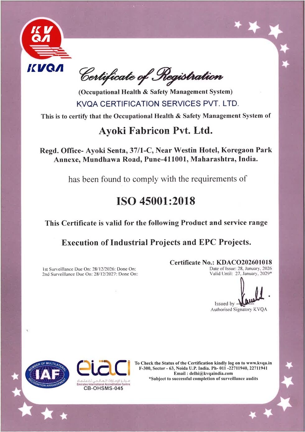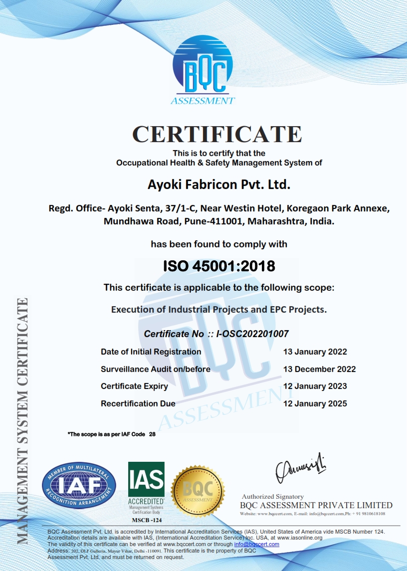 Incorporated as Ayoki Fabricon Pvt Ltd.