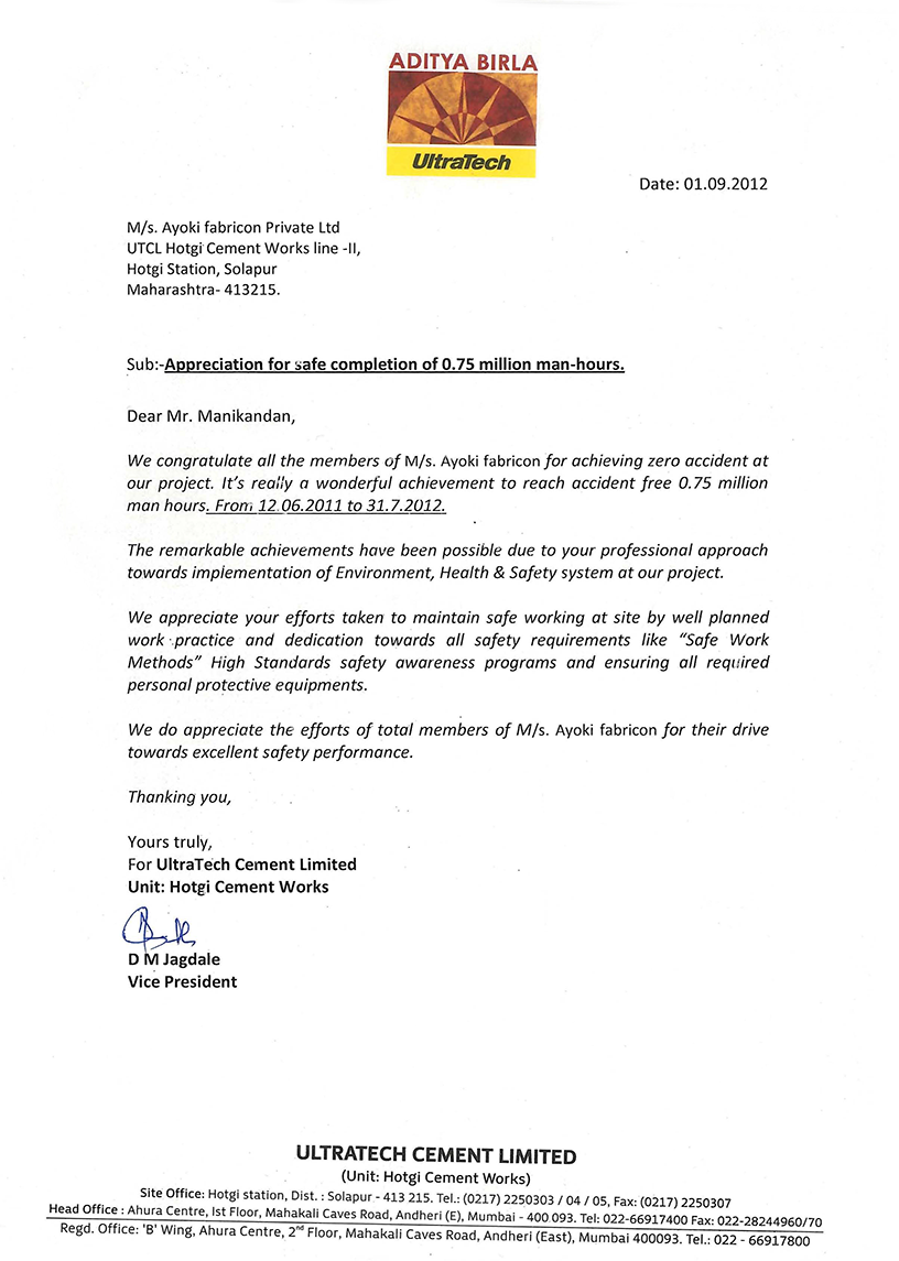 Achieved Record Completion of Mechanical Construction in 10.5 months for Ultratech Cement 7500 TPD Plant at Dhar, MP, India.