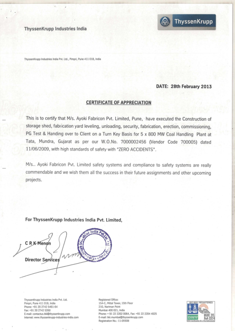 The first contract from the ThyssenKrupp (Formerly Buckau Wolf) for mechanical construction of a Coal Handling Plant.